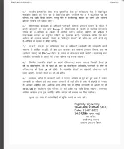 इस संबंध में शासन के सभी विभागों, अध्यक्ष राजस्व मंडल बिलासपुर, सभी विभागाध्यक्षों, संभागीय आयुक्तों एवं सभी कलेक्टरों को आवश्यक दिशा-निर्देश जारी कर दिए गए हैं।